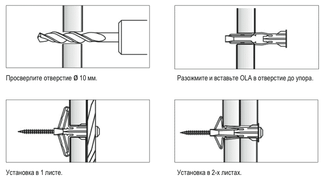 Для монтажа легких изделий на листы гипсокартона