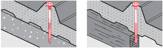 - бетон (предварительно просверлить отверстие Ø 5,0 мм или Ø 5,5 мм при высокой прочности бетона)