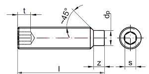 DIN 915 Винт установочный с внутренним шестигранником и цилиндрическим концом. Конец установочного винта имеет специальную цилиндрическую форму, служащую для фиксации собранных деталей конструкции относительно друг друга.