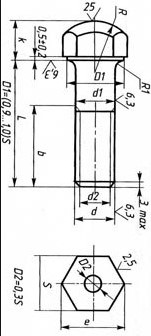 При производстве болтов использована высококачественная сталь 40Х, 45Х стойкая к деформациям и коррозии. Изделие изготовлено согласно нормам 11674. Оно имеет точную геометрию, отвечающую категории , и большую прочность, соответствующую классу 10,9. Поле допуска его резьбы составляет 6g.