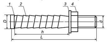 Обозначения на чертеже: 1 - болт; 2 - заклинивающий элемент (ЗЭ); 3 - шайба по ГОСТ 6958-78; 4 - гайка по ГОСТ 5915-70.