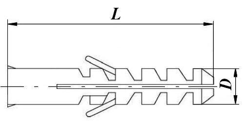 | Обозначение | L, длина дюбеля | D, диаметр отверстия под дюбель | Диаметр шурупа | min глубина сверления | min глубина анкеровки | Номинальный вес 1000 шт., (кг) |