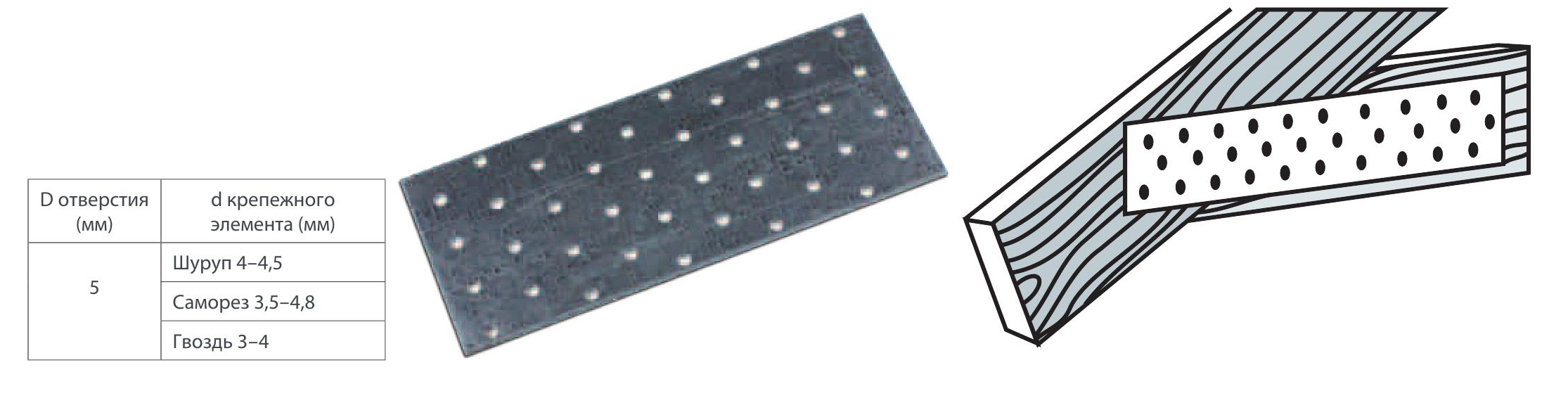 Таблица размеров и характеристик перфорированных соединительных пластин в мм