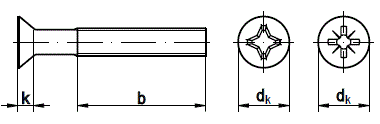 dk - диаметр потайной головки, мм